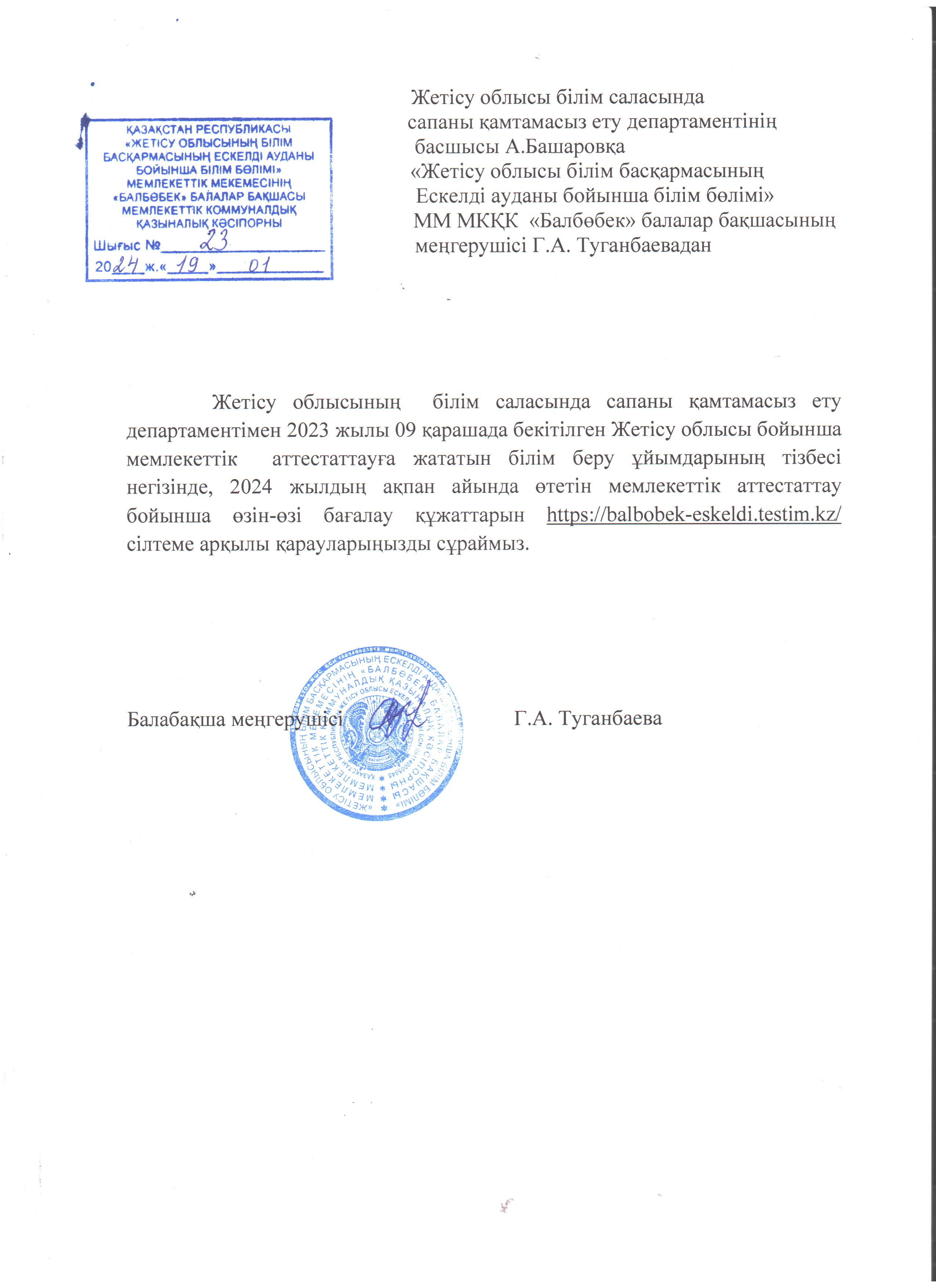 "Жетісу облысы білім басқармасының Ескелді ауданы бойынша білім бөлімі" мемлекеттік мекемесінің "Балбөбек" балалар бақшасы МКҚК