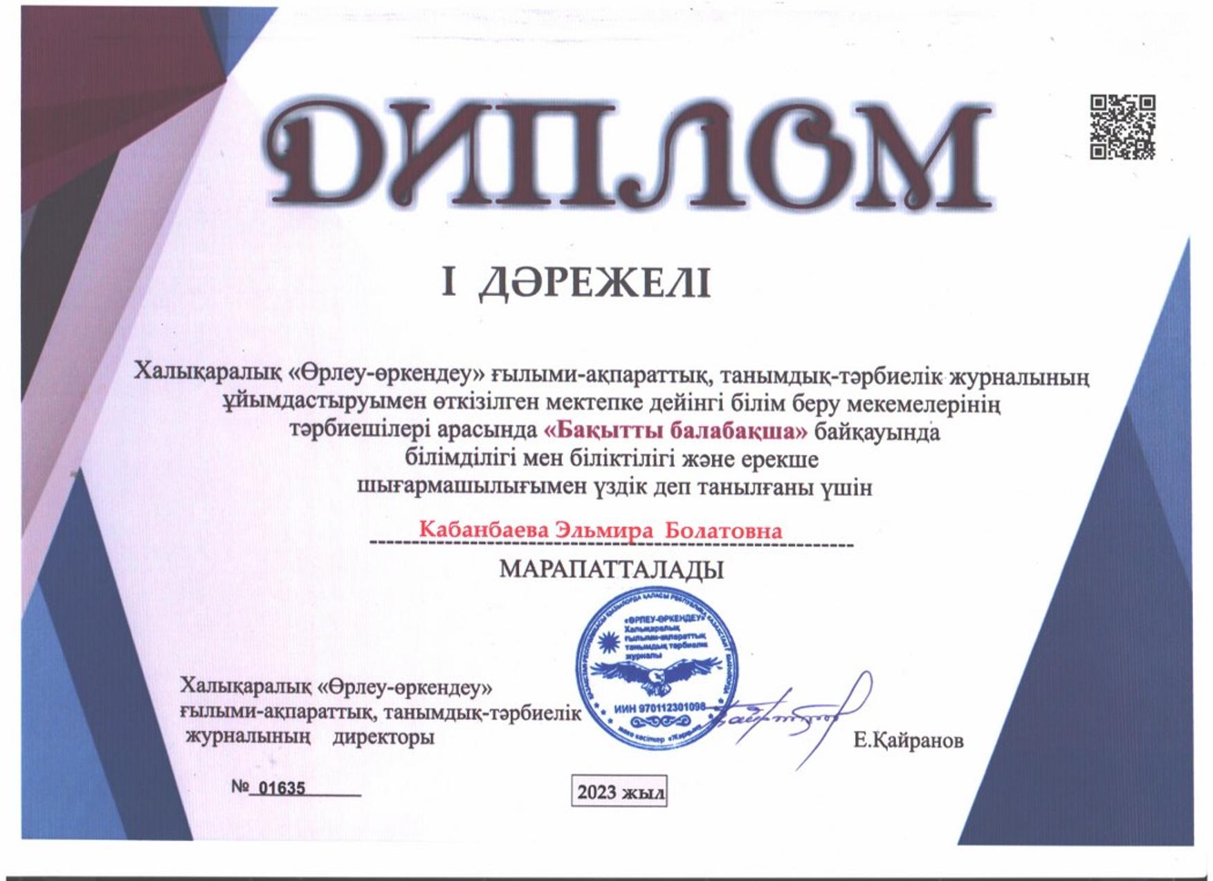 "Жетісу облысы білім басқармасының Ескелді ауданы бойынша білім бөлімі" мемлекеттік мекемесінің "Балбөбек" балалар бақшасы МКҚК